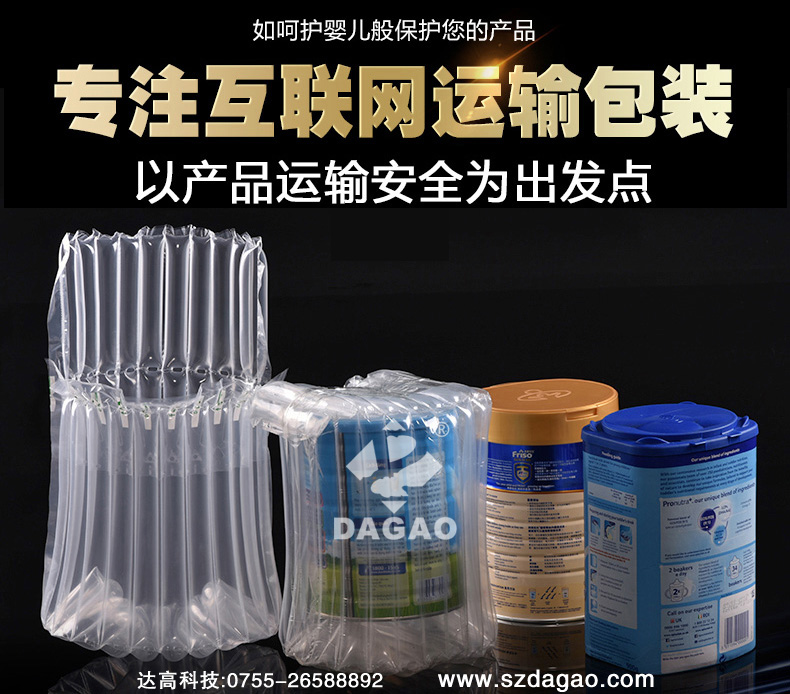 規(guī)格分類:奶粉氣柱袋、筆記本氣柱袋、紅酒氣柱袋、罐頭氣柱袋、蜂蜜氣柱袋、氣柱卷材