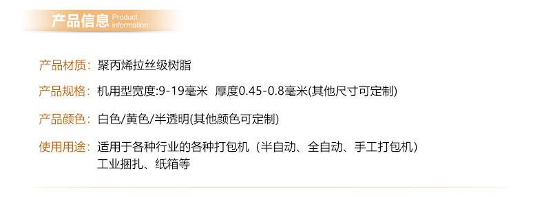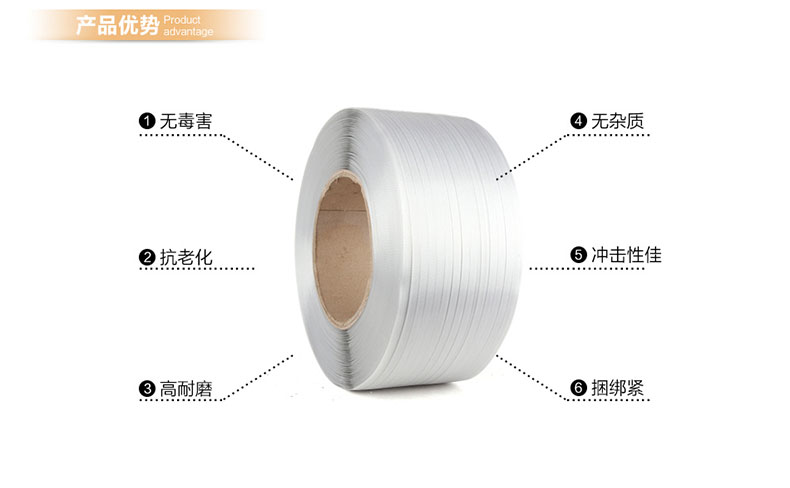 2、生產(chǎn)設(shè)備和熟料的技術(shù),經(jīng)高靜密儀器嚴(yán)格檢測(cè),保證出廠的產(chǎn)品穩(wěn)定品質(zhì),保證打包帶厚度均勻。彎曲度小,送帶順暢。
